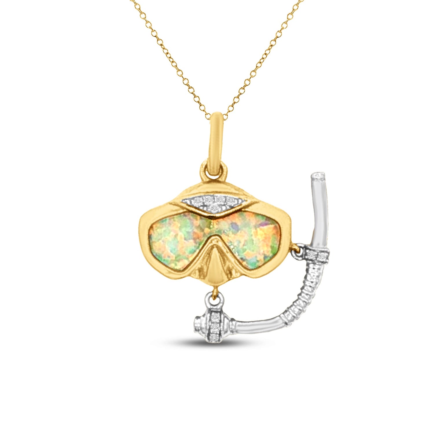 14K 17x15mm opal snorkel pendant with 10 diamonds 0.04ct on 18 inches chain