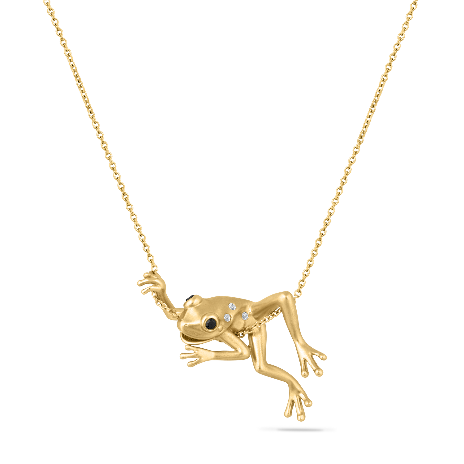 14K FROG PENDANT WITH 3 DIAMONDS 0.016CTAND 2 BLACK DIAMONDS 0.038CT ON 18 INCHES CABLE CHAIN