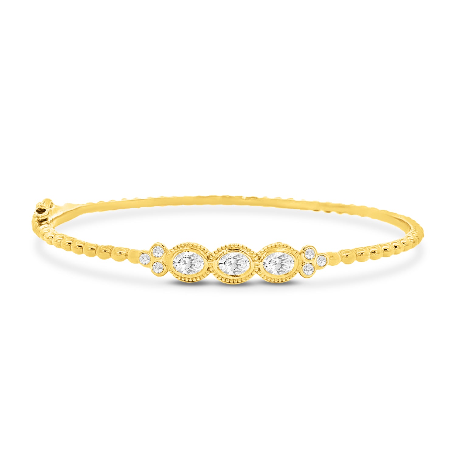 14K BEADED BANGLE WITH 3 OV DIAMONDS 0.56CT & R RD DIAMONDS 0.10CT TW 0.66CT