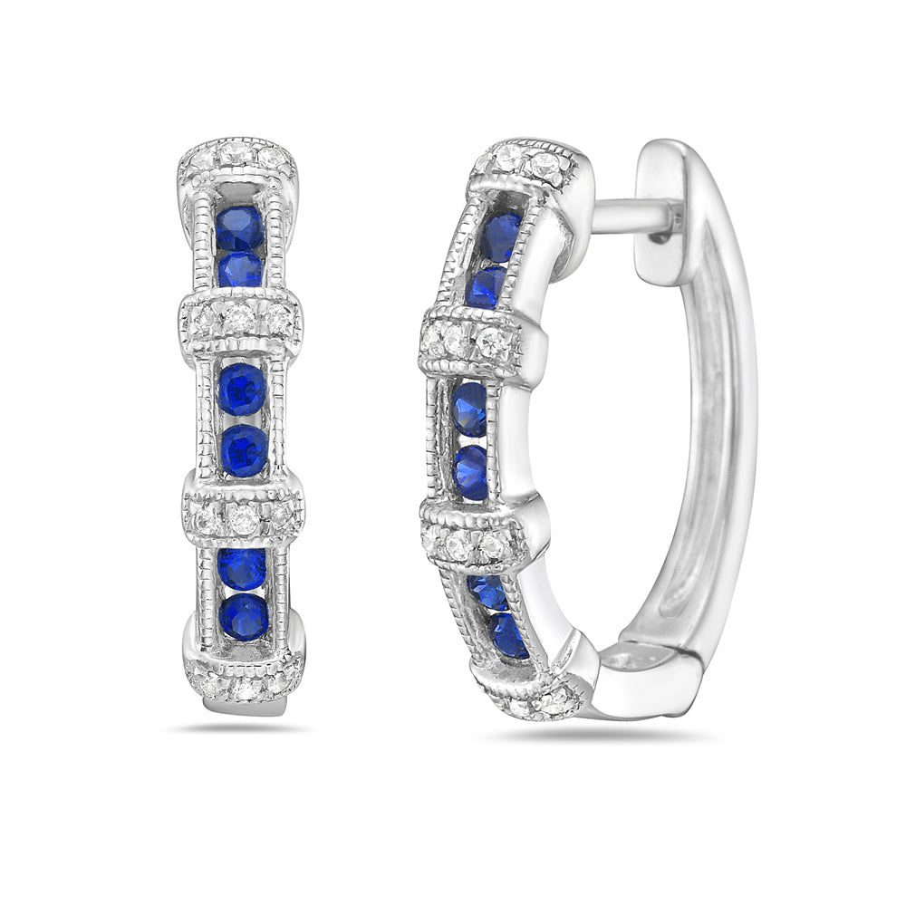 14K EARRINGS WITH 24 DIAMONDS 0.08CT & 12 SAPPHIRES 0.60CT