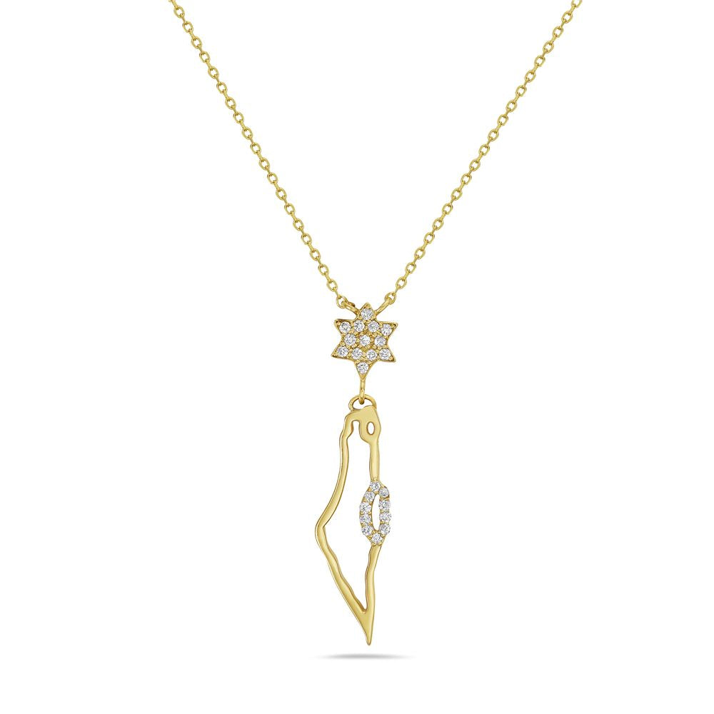 14KY 23X18MM ISRAELI MAP NECKLACE WITH 23 DIAMONDS 0.11CT ON 18 INCHES CABLE CHAIN