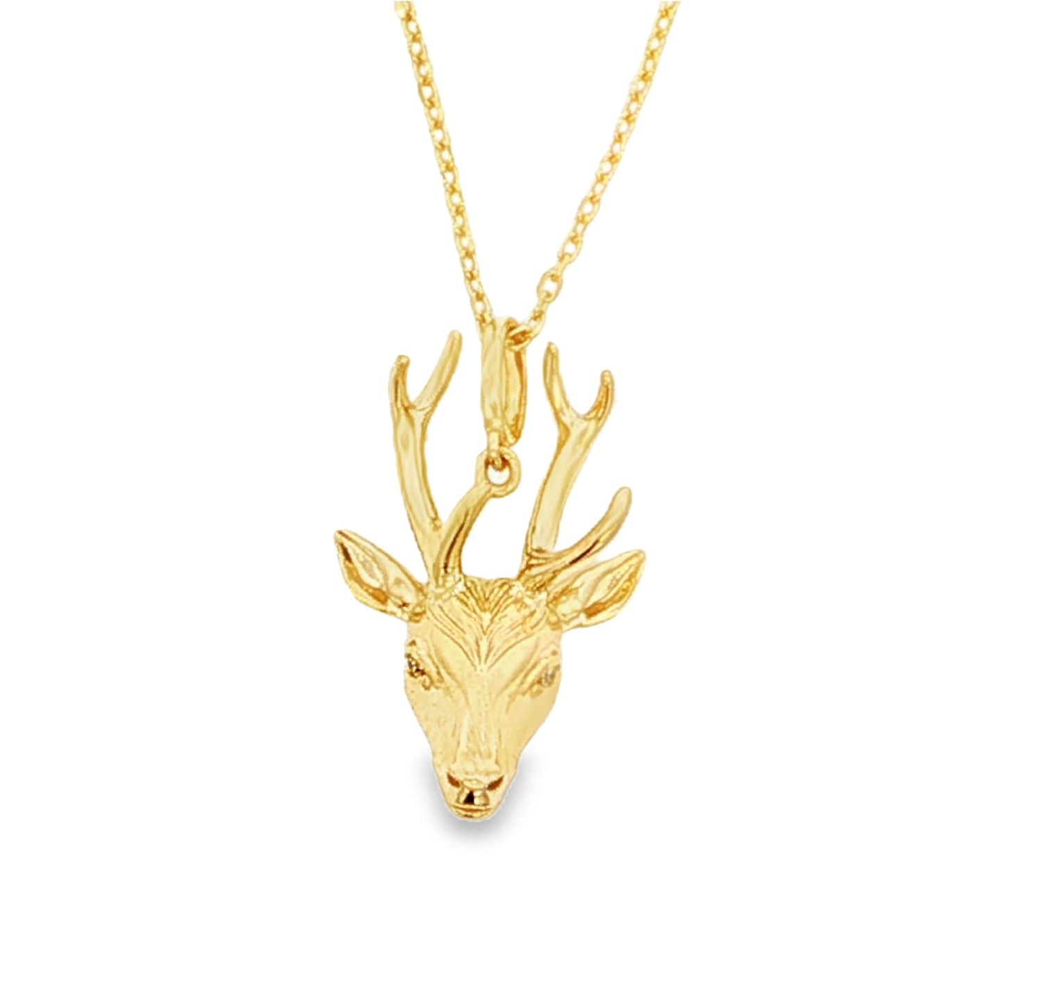 14KY Sika deer pendant with 2 diamonds 0.018ct on 18 inch cable chain